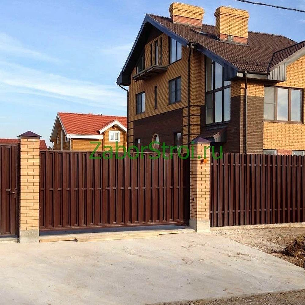 Откатные ворота из евроштакетника с встроенной калиткой и автоматикой