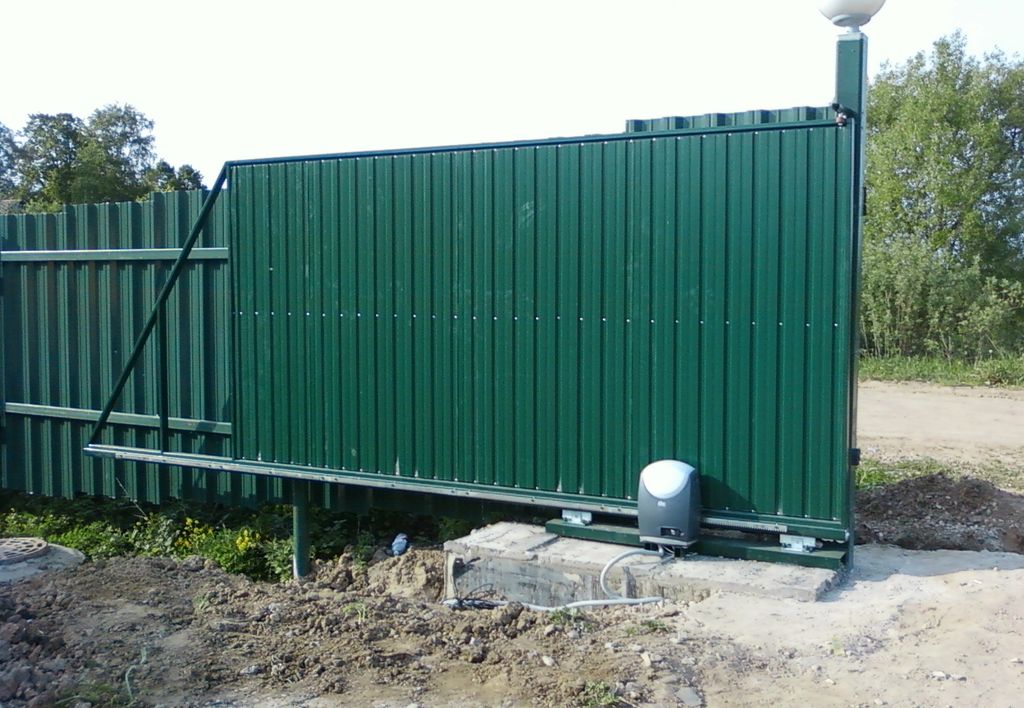 Откатные ворота из профнастила с встроенной калиткой и автоматикой